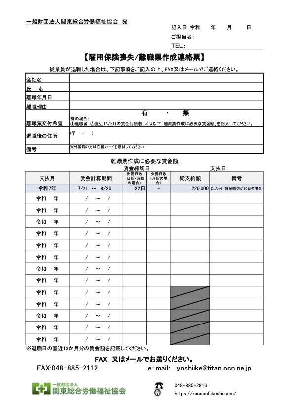 なお、労働保険料の清算事務などに必要な資料のご提供にご協力下さい。