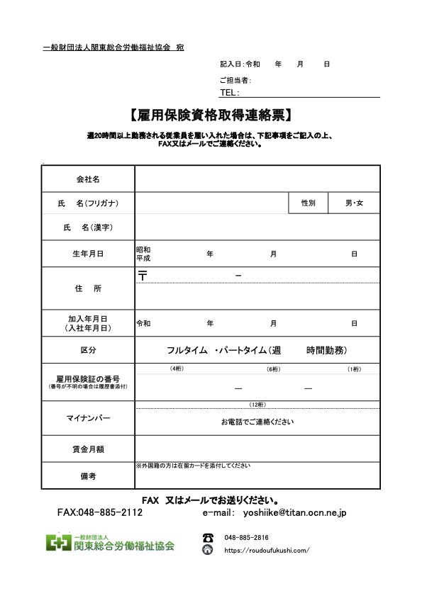 従業員の入社・退社、事業所情報の変更等があった場合は、速やかに当協会へご連絡ください。